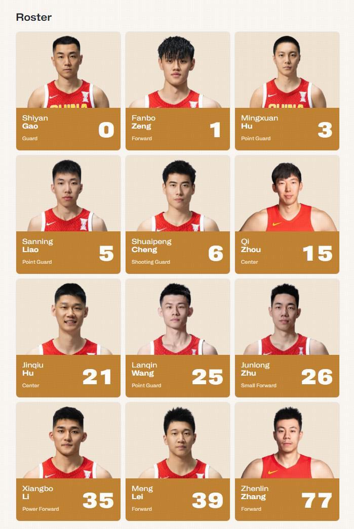 中國(guó)男籃12人大名單:高詩巖、曾凡博、胡明軒、廖三寧、程帥澎、周琦、胡金秋、王嵐嵚、朱俊龍、李祥波、雷蒙、張鎮(zhèn)麟。