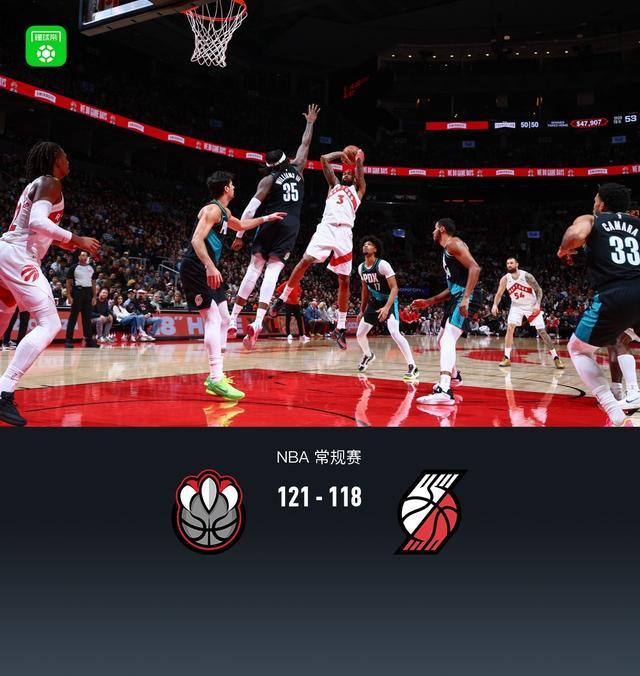 第四節(jié),開節(jié)開拓者克林根二次進(jìn)攻2+1得分,隨后阿夫迪亞與巴恩斯、迪克展開對(duì)飚,猛龍依舊領(lǐng)先14分,隨后猛龍進(jìn)攻斷電,開拓者卡馬拉、阿夫迪亞相繼三分,緊跟格蘭特、阿夫迪亞沖框,一波10-0追至4分分差,猛龍巴恩斯、英格拉姆站出來得分止血穩(wěn)住局面,開拓者夏普站出來持續(xù)沖框得分迫近至2分分差,隨后猛龍奎克利、珀?duì)柼貭栂嗬^得分再度拉開分差,開拓者卡馬拉、阿夫迪亞、夏普回應(yīng)再度迫近至2分,最后關(guān)鍵時(shí)刻開拓者阿夫迪亞接連強(qiáng)攻未果,猛龍英格拉姆連得3分領(lǐng)先5分,開拓者格蘭特強(qiáng)行三分續(xù)命,猛龍英格拉姆兩罰一中領(lǐng)先3分,但時(shí)間還剩1秒開拓者阿夫迪亞后場(chǎng)三分不中,全場(chǎng)結(jié)束,猛龍121-118戰(zhàn)勝開拓者