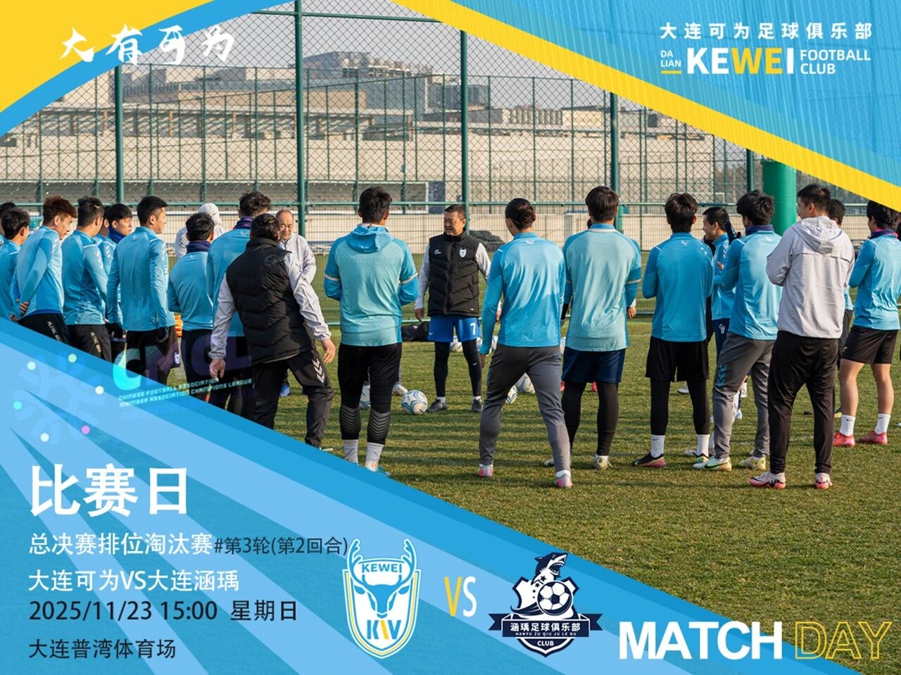 北京時間11月23日15點,2025中國足球協(xié)會會員協(xié)會冠軍聯(lián)賽總決賽排位淘汰賽第三輪(第二回合),大連可為將在主場大連普灣體育場對陣同