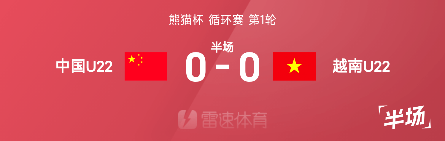雷速體育11月12日訊 25賽季熊貓杯循環(huán)賽第1輪,中國U22迎戰(zhàn)越南U22。半場戰(zhàn)罷,雙方比分暫為中國U220-0越南U22。