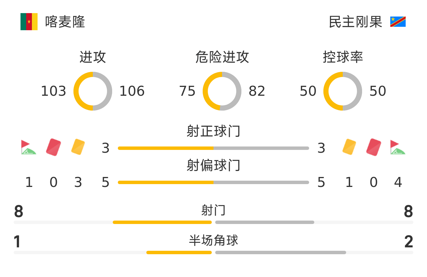 喀麥隆替補(bǔ)陣容:16-埃普西、1-奧莫索拉、13-永格瓦、22-恩佐·博約莫斯、4-博克勒、18-霍格拉、8-尤努薩、10-阿布巴卡爾、7-恩庫(kù)杜、11-巴索戈、19-恩加馬魯、12-索科