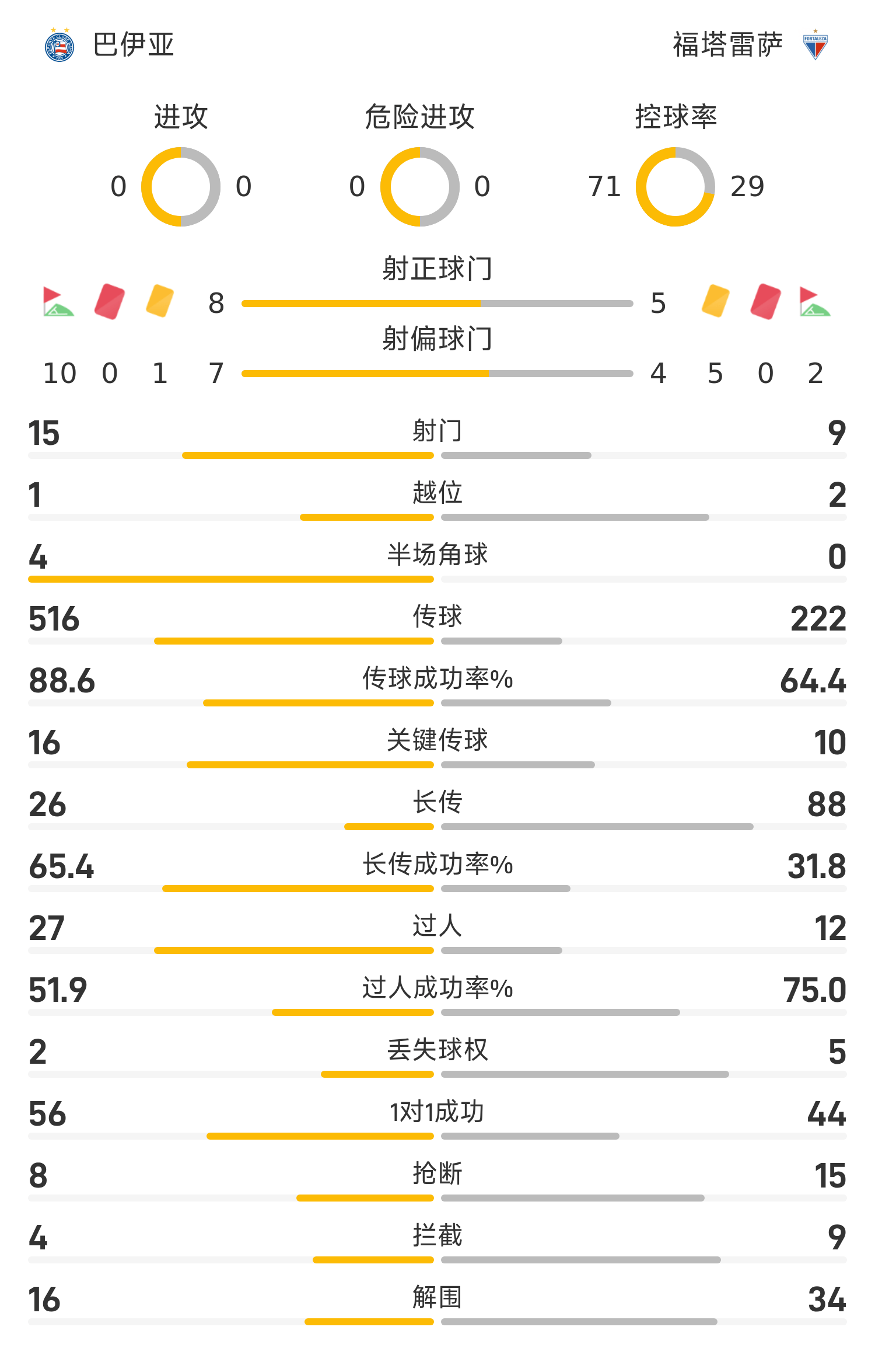 巴伊亞替補陣容:34-若奧·保羅、13-S.阿里亞斯、25-伊阿古、4-卡努、44-古斯塔沃、10-里貝羅、8-蘇扎、11-內(nèi)斯特、26-阿塞維多、5-雷森德、37-凱伊奇、77-蒂亞戈