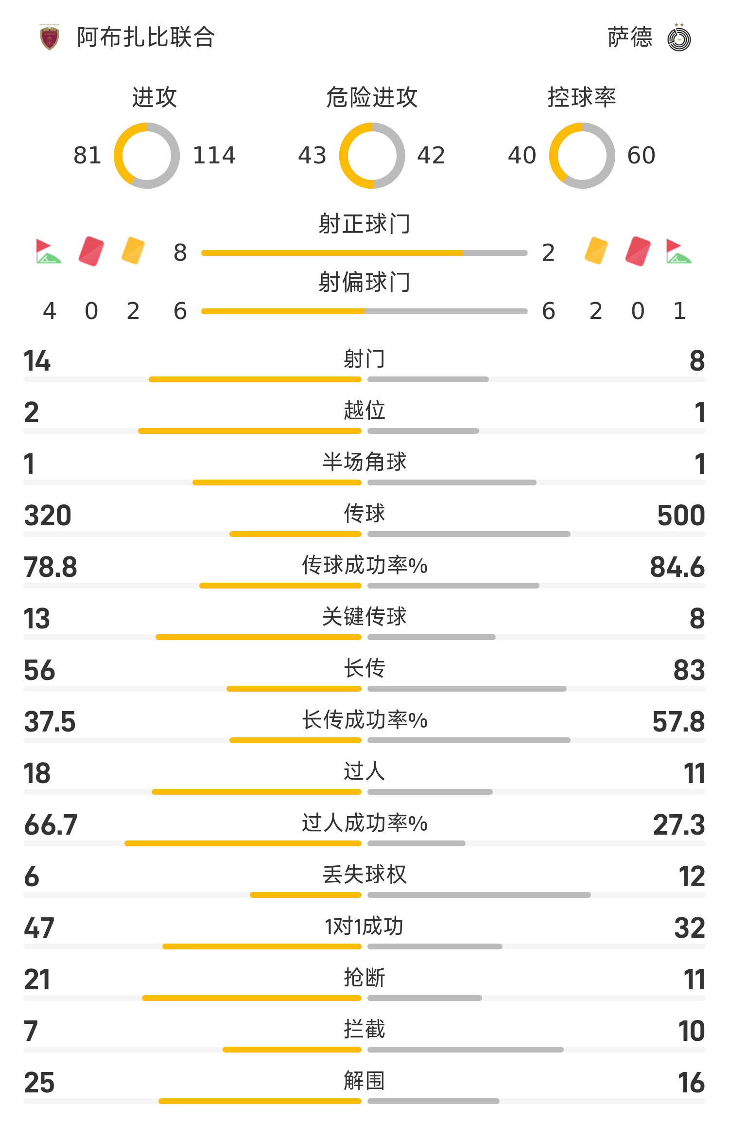 45+3’祖希爾禁區(qū)手球造點(diǎn),克勞迪諾破門(mén),薩德1-0阿布扎比聯(lián)合