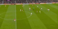 但西漢姆聯(lián)也能用長傳球利用到曼聯(lián)因為壓上而留出的空當(dāng):